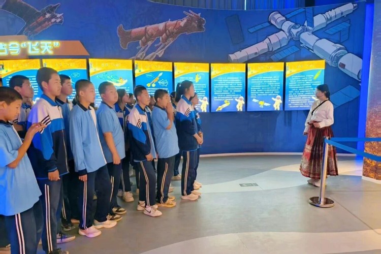 学子们在讲解员引导下,逐一探访四大主题展厅。在《会水长歌——金塔古代文明寻踪》中追溯先民足迹,从文物中聆听千年历史回声;走进《汉风简韵——肩水金关汉简文化陈列》,触摸汉代戍卒留下的文明印记,领略简牍承载的历史价值与书法艺术 ;在《塔韵生辉——金塔塔文化印象》里,透过金塔的沧桑变迁读懂地域文化根脉;而《金塔问天——趣味航天文化展》中的火箭与航天系列模型,则让孩子们直观感受中国航天的辉煌成就,埋下探索宇宙的种子 。
