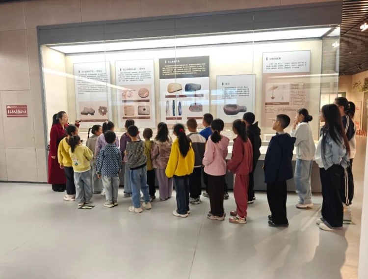 在社教老师的带领下,小朋友们走进《会水长歌——金塔古代文明寻踪》展厅,近距离观摩石壁、石琮、陶俑、陶制六畜等珍贵文物,用通俗易懂的语言讲解汉魏时期古会水地区的丧葬祭祀文化与历史内涵,让孩子们在直观感受文物魅力的同时,触摸家乡千年文明脉络,加深对本土历史文化的认知与理解。
