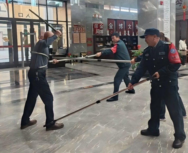 本次培训演练邀请甘肃雄师保安服务有限公司专业老师现场指导,参训人员涵盖馆内全体干部职工。活动分为基础培训和实战演练两个环节,基础培训重点讲解防暴盾牌、钢叉、抓捕器等警械的操作方法及小组协同控制、隐蔽疏散等实战技巧;实战演练设置安检口可疑人员处置、展厅持械袭击应急疏散、人质劫持联动解救三个场景,全面检验应急处置能力和预案实操效果。高度还原了真实突发场景,逼真模拟险情。全体参训人员迅速响应、沉着应对,按照既定分工开展现场警戒、控制处置、人员疏散与联动解救等工作,全程流程严密、行动迅速、配合默契,高效完成全流程演练,切实提升了场馆应急处置能力。